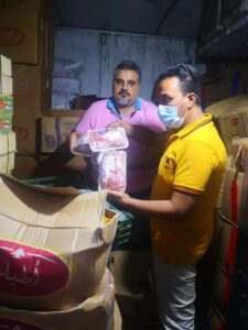 أنه تم ضبط 166 كيلو دجاج و مفروم و برجر وكفتة غير صالحة للاستهلاك الادمى و150 كيلو ممبار سجق مجهول المصدر وغير صالح للاستهلاك الادمى..