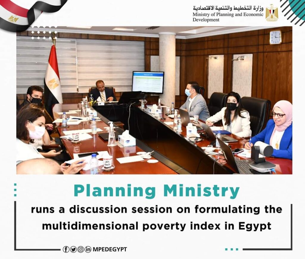 – تحت رعاية الدكتورة هالة السعيد وزيرة التخطيط والتنمية الاقتصادية ، تم عقد جلسة فنية عن طريق الفيديو كونفرنس. برئاسة الدكتور أحمد كمالي نائب الوزير وبحضور الدكتورة ريهام رزق مدير وحدة النمذجة والتنبؤ بالوزارة وبمشاركة الأستاذة هبة الليثي مستشارة رئيس الجهاز المركزي. وكالة التعبئة العامة والإحصاء ، والدكتورة إيمان حلمي ، مساعد وزير التضامن الاجتماعي للشؤون الاقتصادية والشمول المالي ، ومجموعة عمل لجنة الأمم المتحدة الاقتصادية والاجتماعية لغرب آسيا (الإسكوا) برئاسة الدكتور خالد أبو إسماعيل بالإضافة إلى ممثلين عن اليونيسف والجهاز المركزي للتعبئة العامة والإحصاء ، لمناقشة صياغة مؤشر MPI في مصر.