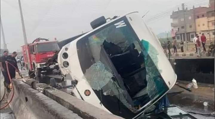 أصيب 22 شخصا، بينهم طفلان في حادث انقلاب أتوبيس مدارس تابع لمحافظة القاهرة، قبل مطلع كوبري صهرجت الكبرى مركز ميت غمر بمحافظة الدقهلية على طريق «القاهرة – المنصورة»، وذلك خلال رحلة إلى مصيف جمصة.