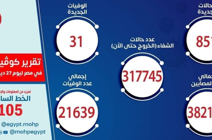 كتب – عماد إبراهيم الصحة: تسجيل 851 حالة إيجابية جديدة بفيروس كورونا .....