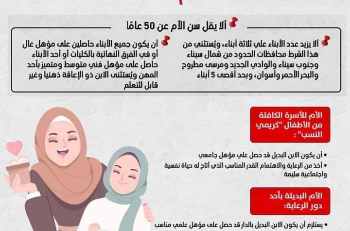 كتب – عماد إبراهيم لا يقل سن الأم عن 50 عامًا وأن يكون...