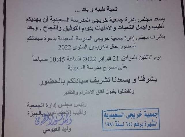 كتب : ماهر بدر تقيم مدرسة السعيدية بالجيزة حفلها السنوى الاثنين 21...