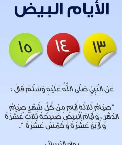 كتبت – هيا هانى العشرى يُقصد بالأيام البيض أيام الثالث عشر، والرابع...