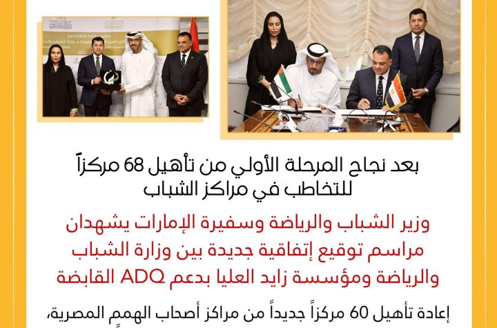 صبحي وسفيرة الإمارات يشهدان مراسم توقيع إتفاقية جديدة بين وزارة الشباب ومؤسسة زايد العليا...