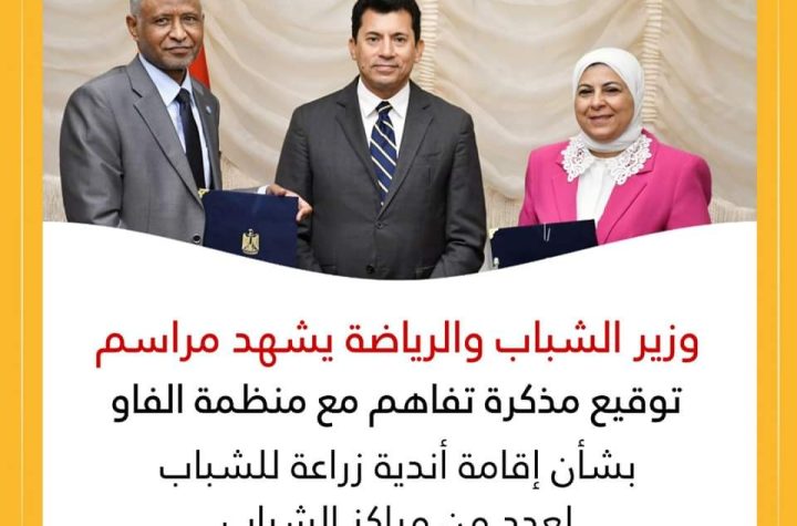 وزير الشباب والرياضة يشهد مراسم توقيع مذكرة تفاهم مع منظمة الفاو ✍- رباب عنان...