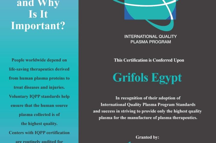 حصول مراكز التبرع بالبلازما التابعة لشركة جريفولز إيجيبت على الشهادة الدولية للجودة ✍- رباب...