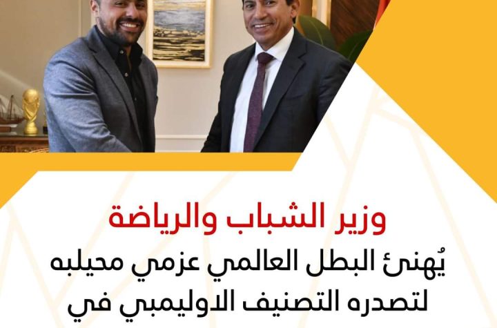 وزير الشباب والرياضة يُهنئ البطل العالمي عزمي محيلبه لتصدره التصنيف الاوليمبي في الاسكيت ✍-...