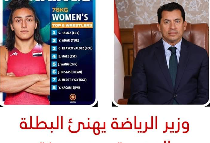 وزير الرياضة يهنئ البطلة المصرية سمر حمزة بصدارة التصنيف العالمي للمصارعة النسائية للعام الثاني...