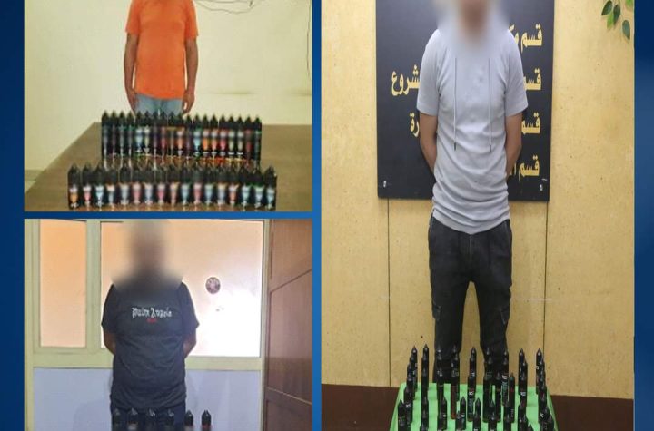 ضبط عدد من القائمين على ترويج عبوات سوائل التدخين الإلكترونى مدون عليها أسماء لمواد...