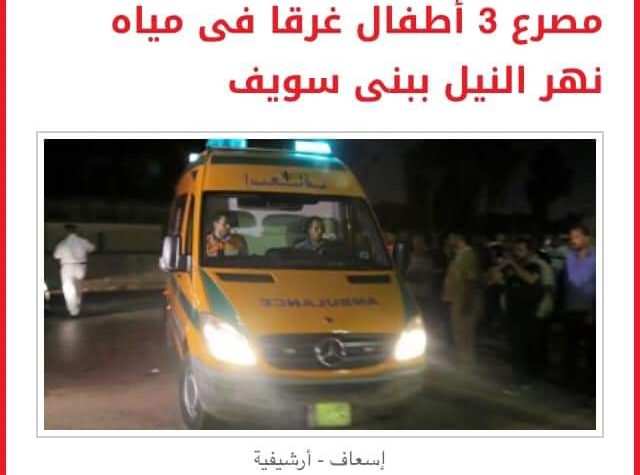 كتبت ـ انجى ماهر لقى 3 أطفال بينهم شقيقين مصرعهم غرقًا بمحافظة بنى سويف،...